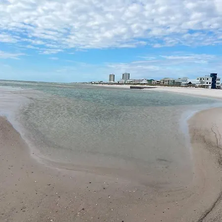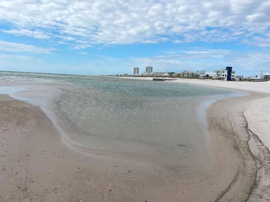 Staying at the 4-bedroom Coastal Cottage Gulf Shores, guests can easily reach Gulf Shores Public Beach, located approximately a 10-minute drive away.
